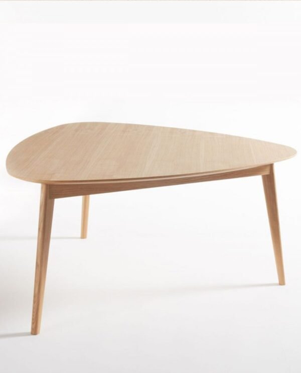 Une table à manger triangulaire chêne matière bois.