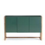 Commode chic verte avec des pieds en acier coloré en or.